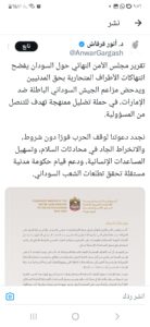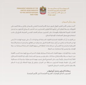وتابع: “تقرير مجلس الأمن النهائي حول السودان يدحض مزاعم الجيش السوداني ضد الإمارات ونجدد دعوتنا لوقف الحرب”.