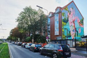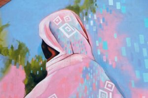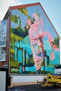 بالصور .. جدارية لسيدة سودانية ترتدي التوب، على أحد المباني في شارع رئيسي بمدينة دوسلدورف الألمانية، بأسم (يلا) للتشكيلية: جوليا بينز