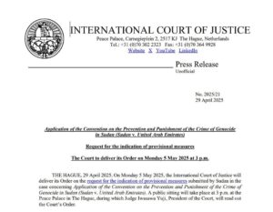 محكمة العدل الدولية تصدر قرارها حول التدابير المؤقتة في قضية جمهورية السودان ضد دولة الإمارات العربية يوم الاثنين