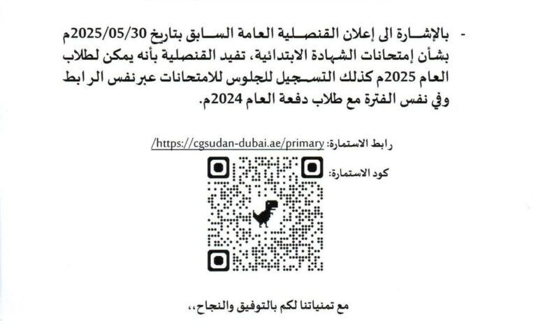 قنصلية السودان بدبي : رابط التسجيل لطلاب الشهادة الابتدائية 2024م-2025م