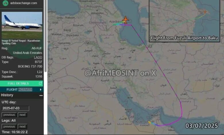 وقالت المصادر أن الطائرة الخاصة المستخدمة في تحركاته مع الكيان الاسرائيلي من طراز بوينغ 737-700 تابعة لشركة “رويال جت” ومقرها الإمارات. مبينة أن (رقم التسجيل( A6-RJF)