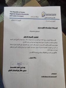 ووجهت شركة مطارات السودان في تعميم لكل شركات الطيران بعدم نقل أي أجنبي دون تأشيرة مسبقة أو إذن من الجهات المختصة.
