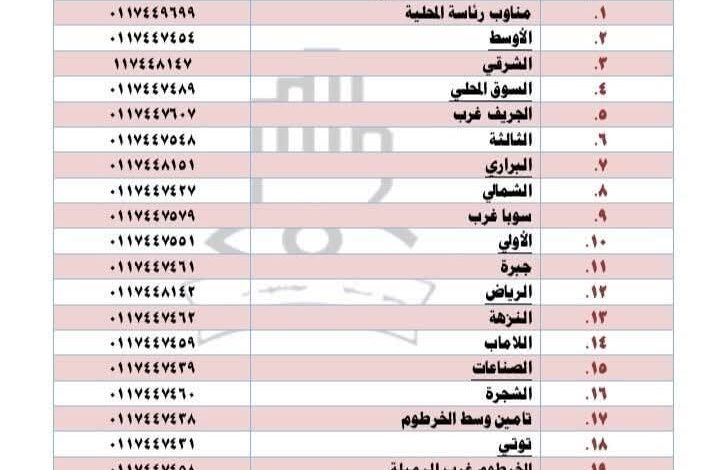 شرطة محلية الخرطوم تنشر ارقام هواتف جميع أقسامها بمحلية للخرطوم وذلك لتلقي البلاغات والحالات الطارئة