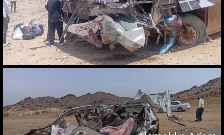 شهد طريق عطبرة – بورتسودان بالقرب من منطقة خور عرب اليوم حادث حركة مروّع بين عربة خاصة وبص سفري، أسفر عن وفاة ستة أشخاص من أسرة واحدة.