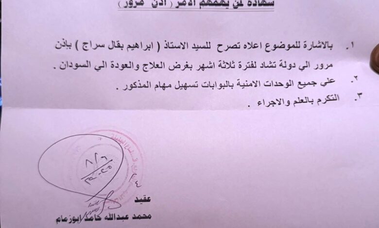 نفى الإعلامي إبراهيم بقال سراج ما تردد عن هروبه إلى دولة تشاد، مؤكداً أنه غادر السودان بعلم مؤسسة الدعم السريع وبموجب إذن رسمي في رحلة استشفاء مدفوعة القيمة.