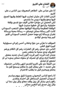 تُوفي الفنان السوداني علي عباس الشهير بـ”علي كايرو”، إثر معاناة مع المرض عقب مضاعفات عملية جراحية خضع لها بإحدى مستشفيات يوغندا.