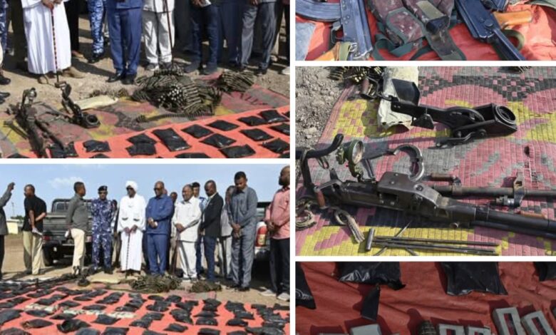 واشاد والى الولاية المكلف الفريق الركن محمد احمد حسن خلال وقوفه ظهر اليوم بمقر الجهاز على كميات كبيرة من الاسحلة والذخائر التى تخص الشبكة والتى تم ضبطها و بحضور عدد من أعضاء لجنة الامن و مدير عام وزارة الصحة و التنمية الاجتماعية اشاد بهذا الانجاز الذى يصب في صالح تعزيز الامن والاستقرار والتصدى للمهددات الامنية مبينا ان الأسلحة والذخائر المضبوطة شملت الأسلحة التى تتعامل بها القوات النظامية مما يؤكد على أنها من العمليات النوعية الناجحة مطالبا القوات النظامية بتشديد الرقابة ورفع درجات اليقظة لمكافحة الظواهر السالبة والمضرة بالامن.