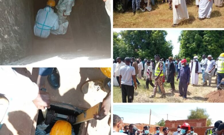 فى عملية نوعية معقدة وبعدتوافر معلومات من أقارب المتوفين بوجود رفاة لجثتين القيتا داخل بئر سابتك تانك بإحدى المنازل بمحلية شرق النيل تحركت على الفور فرق الدفاع المدنى لمكان الحادث بحضور مدير دائرة الشئون العامة ومدير الدفاع المدني بمحلية بحري ومدير الطب العدلي وعدد من زويهما وبعد معاينة الموقع وعمل التحوطات الفنية اللازمة باشر الفريق الفني مهامه وتمكن من إنتشال الرفاة
