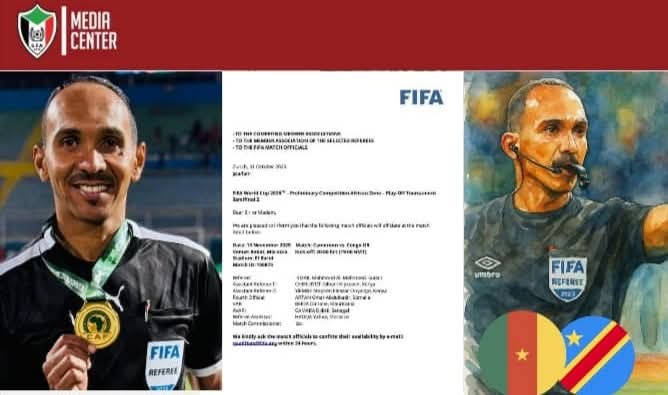 اختار الاتحاد الدولي لكرة القدم (فيفا) ولجنة حكامه، الحكم السوداني الدولي محمَود اسماعيل شانتير ، على رأس طاقم تحكيم مباراة الكنغو الديموقراطية والكاميرون ضمن ملحق تصفيات كأس العالم 2026 المقامة بالمغرب يوم 13 نوفمبر 2025.