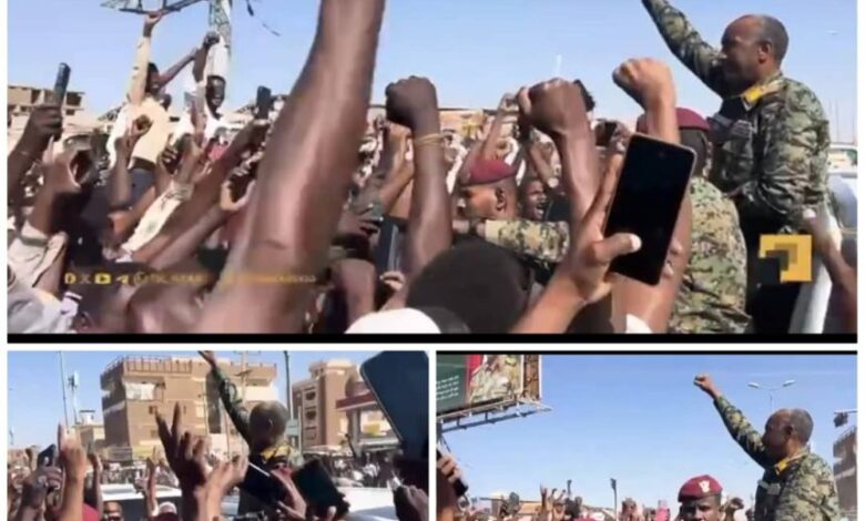 واحتشدت الجماهير بصورة عفوية لتحية رئيس مجلس السيادة الذي بادلهم التحية وسط هتافات الجماهير وزغاريد النساء