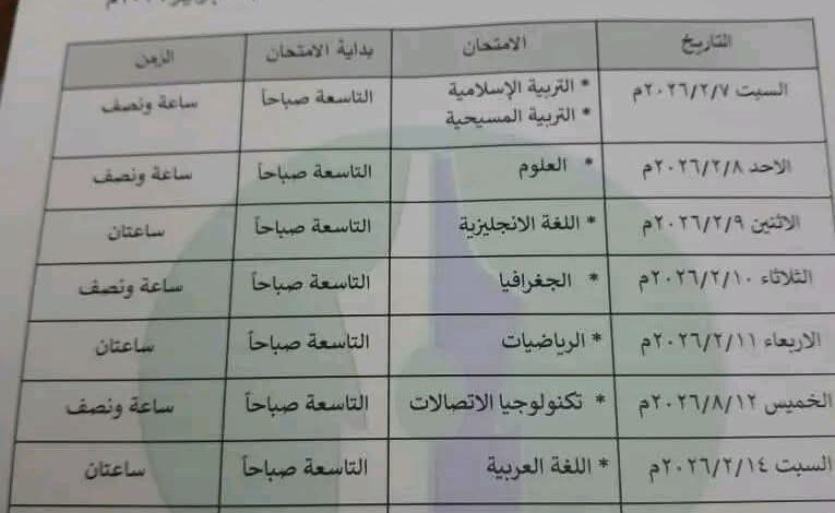 وزارة التعليم والتربية الوطنية ولاية الخرطوم تصدر جدول امتحانات شهادة المرحلة الابتدائية في السابع من فبراير ٢٠٢٦م