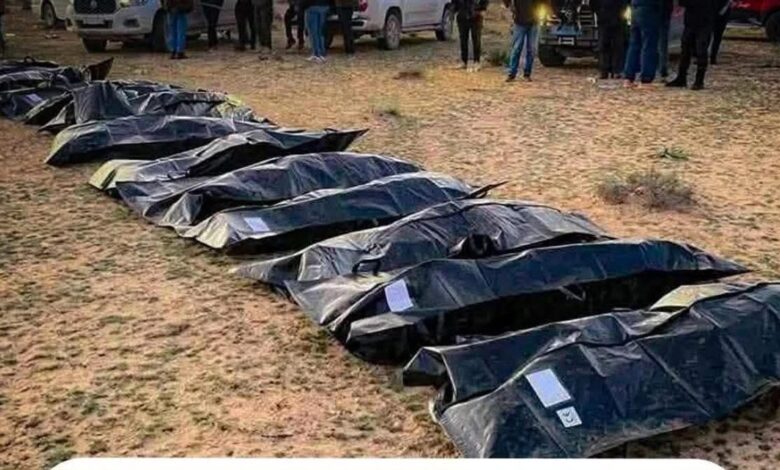 أعلن جهاز الأمن الداخلي فرع أجدابيا العثور على قبور جماعية تضم رفات 21 مهاجرا من جنسيات إفريقية مختلفة، تم قتلهم على يد مواطن ليبي من ذوي السوابق الجنائية، يقوم بإيواء مهاجرين غير شرعيين داخل مزرعته.