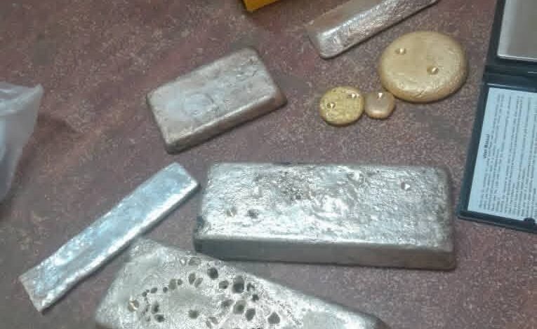 تمكن فريق الميدان بالإدارة العامة لمباحث التجارة والتموين وحماية المستهلك فرعية نهر النيل بقيادة ضابط شرطة من ضبط المتهم ( م، ع، ع) بحي المطار وبحوزته عدد (6) سبائك من الذهب زنة (590) جرام وعدد (10) سبائك من الفضة زنة (5769) جرام دون أوراق رسمية تثبت ملكيته له