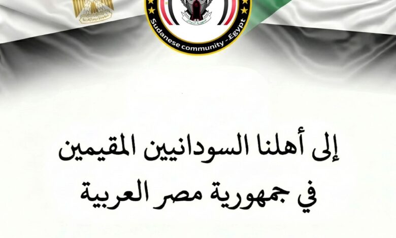 وجهت الجالية السودانية في مصر رسالة مطولة وصفتها بـ«الحديث من القلب إلى القلب»، خاطبت فيها السودانيين المقيمين بمصر، محذّرة من خطورة الانسياق خلف الشائعات والخطاب الانفعالي في ظل الأوضاع الأمنية الراهنة.