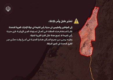 الحرس الثوري الإيراني يحذر المواطنين والمقيمين في مدينة رأس الخيمة في الإمارات ويدعوهم للمغادرة فورا