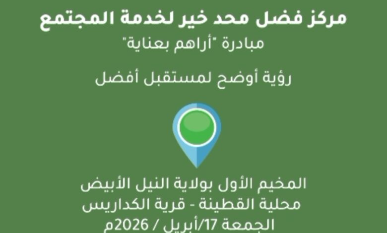 يدشن مركز فضل محمد خير لخدمة المجتمع، غداً الجمعة، أولى المخيمات العلاجية المجانية لعلاج أمراض العيون، تحت شعار: “رؤية أوضح لمستقبل أفضل”، وذلك ضمن مبادرة تستهدف علاج (1200) مريضاً في عدد من ولايات السودان.