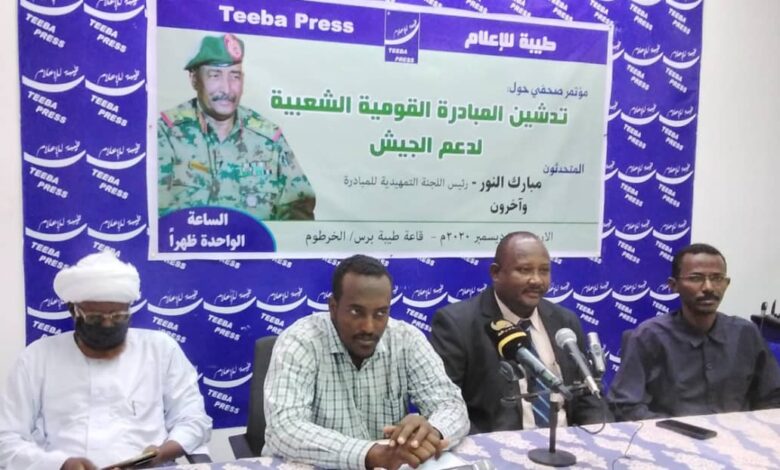 أعلنت اللجنة التمهيدية للمبادرة القومية الشعبية لدعم الجيش عن تدشين إنطلاقها اليوم لدعم ومساندة القوات المسلحة خلال مؤتمر صحفي في منبر “طيبة برس ” اليوم الاربعاء وحدد رئيس اللجنة التمهيدية للمبادرة مبارك النور عبدالله ،أهدف هذه المبادرة والتي تأتي بسند شعبي للوقوف خلف الجيش ودعم القوات المسلحة بشقين شق معنوي وشق مادي .