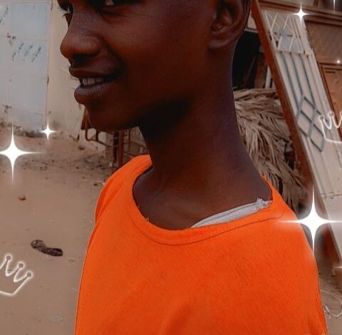 يبلغ من العمر 16 عاما، سليم العقل، متوسط القامة، أسمر اللون، يرتدي بنطلون رمادي وتي شيرت رمادي بطاقية ملصقة به.