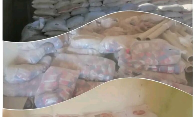 وعثر بداخل المصنع على كميات كبيرة من الدقيق والشعيرية والمياه المعبأة بالإضافة لماكينة خياطة جوالات