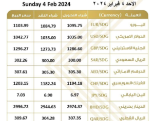سجلت اسعار صرف العملات الأجنبية مقابل الجنيه السوداني في بنك الخرطوم حسب تحديث في المؤشر اليوم الاحد 4 فبراير 2024م القيم الآتية :