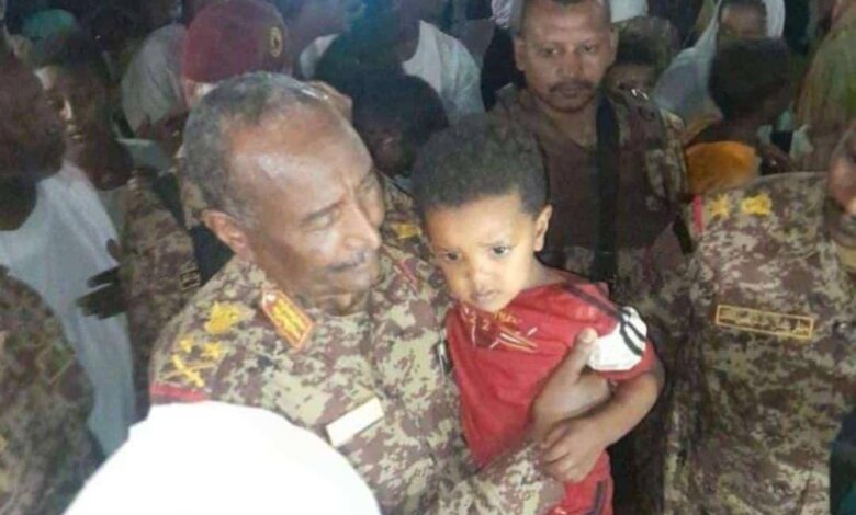 “البرهان” يحمل طفل الشهيد البطل “محمد صديق” على يديه والطفل يُحَمِل “البرهان” مسئولية الثأر لكرامة (الوطن) لا، لأبيه لأن أبيه اشتري المجد بأغلى ثمن مضحياً بروحه الطاهرة لأجل أن يعيش سوداننا علماً بين الأمم ..