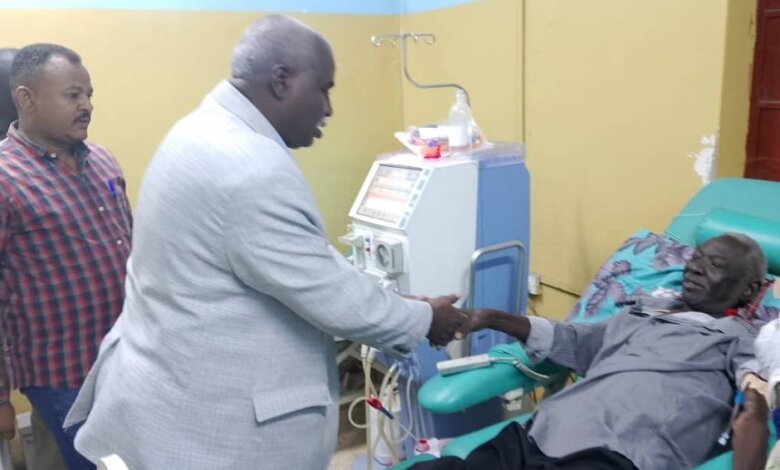 و إجتمع الوفد مع إدارة المركز وإستمع للمشاكل التى تعترض إستمرارية العمل خاصة في ظل الظروف الراهنة والتى من أبرزها مشكلة محطة معالجة المياه وضرورة تحلية المياه المالحة لضررها بالآليات وعدم وجود قطع الغيار وعدم وجود المحاليل وأدوية الغسيل والوقود لتشغيل المولد الخاص بالمركز بجانب مشكلة مركز الدرن وحاجته الماسة للأدوية . وأكد مدير جهاز الأمن والمخابرات العامة بالولاية صيانة عربة إسعاف المركز وحل مشكلة المياه الخاصة بغسيل مرضى الكلى وتبرع بمبلغ 750 ألف جنيه للكادر الطبي تشجيعاً لهم على الجهود التى يبذلونها فى سبيل خدمة المرضى فى هذه المرحلة . وتعهد بالتواصل مع بعض الجهات لتسريع وتيرة إيصال الأدوية للولاية فى القريب العاجل والتى من بينها أدوية ومستهلكات ومحاليل غسيل الكلى . داعياً المؤسسات العسكرية والمدنية إلى تضافر الجهود والوقوف مع المركز خاصة في هذه الظروف الصعبة والحرجة لمواصلة عمله وإنقاذ حياة المرضى الذين يصعب التنقل بهم في مستشفيات الولايات جراء الأحداث الجارية .