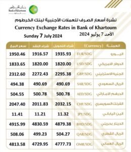 اسعار العملات الاجنبية مقابل الجنيه السودانية اليوم في بنك الخرطوم