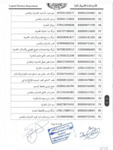ذكر في منشور أنه وفقًا لما ورد في المادة 41 الفقرة 2 من قانون تنظيم العمل المصرفي، تم الإعلان عن حظر شامل على الشركات وأسماء الأعمال المذكورة أدناه، بسبب عدم التزامها بسداد حصائل الصادرات المستحقة خلال الفترة السابقة ح