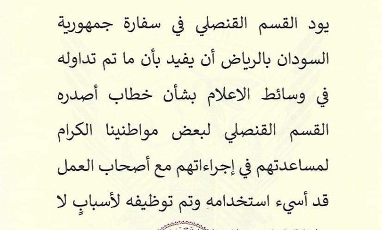الأخبار توضيح من سفارة السودان بالرياض عزة برس2024-10-28تابعنا على الواتساب لمزيد من الاخبارعزة برس2024-10-28 فيسبوك X لينكدإن ماسنجر ماسنجر واتساب تيلقرام