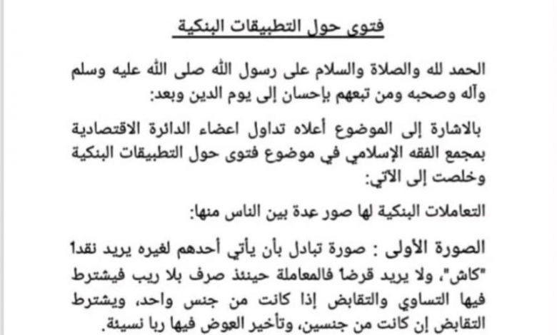 كما أصدر مجمع الفقه الإسلامي فتوى في شأن التحويل والصرف عبر التطبيقات البنكية.. موضحا صورا من المعاملات وحكمها في الشرع كما في بيانه المرفق