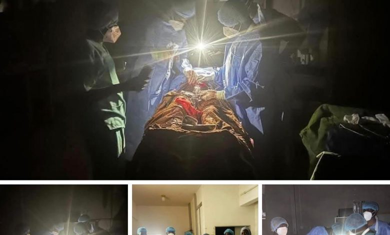 وأضاف مناوي : هذه العمليات تتم تحت أضواء اللمبات البسيطة المحموله على الأيدي.