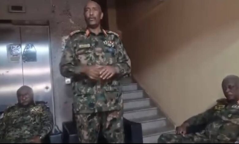 وبحسب صفحات موالية للقوات المسلحة، ظهر قائد الجيش البرهان خلال حديثة برفقة مساعده الفريق أول ركن ياسر العطا وقادة بهيئة الأركان وسلاح الاشارة، وقادة آخرين لم يتثني لـ”عزة برس” التعرف على هويتهم.