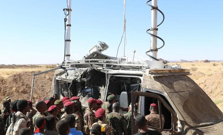 ووقف الفريق أول الركن البرهان على كمية الأجهزة والمعدات العسكرية التي استولت عليها القوات من العدو والتي من بينها عربة مدرعة بها منظومة حرب إلكترونية متكاملة تعمل على التشويش على الاتصالات بين المحطات الأرضية والطائرات المسيرة، والتضليل على نظام تحديد المواقع الجغرافية.