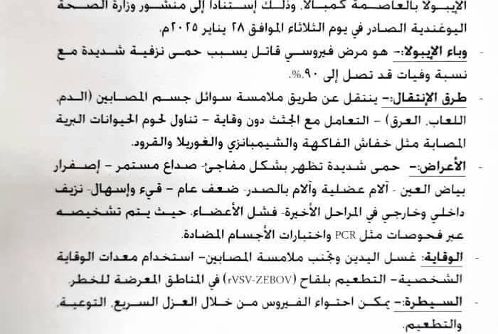 السفارة السودانية بكمبالا تدعو السودانيين لأخذ الاحتياطات الصحية اللازمة عقب ظهور مرض الإيبولا بيوغندا.