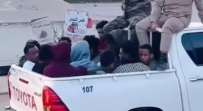 وأظهرت مقاطع فيديو وصور نُشرت على وسائل التواصل الاجتماعي الليبية مشاهد لمهاجرين مقبوض عليهم، من بينهم لاجئين سودانيين.