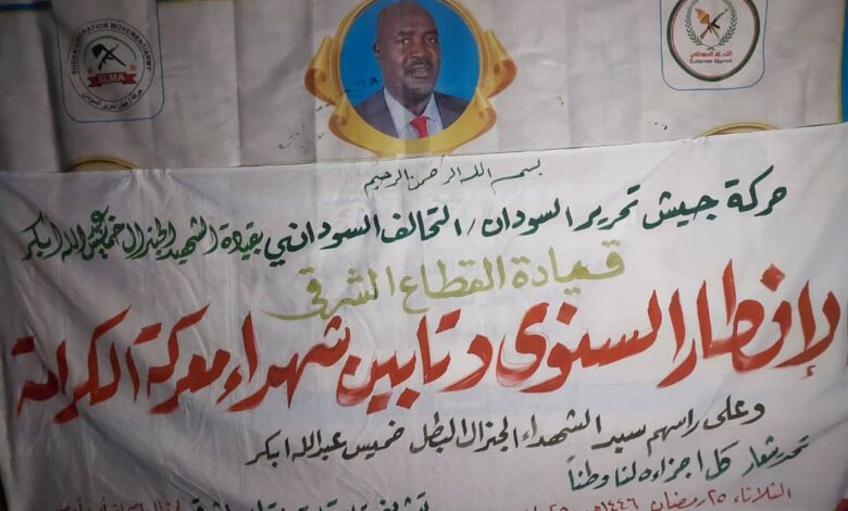 حيا وزير التربيةو التوجيه بولاية القضارف الفاتح الصافي حمزة وممثل الوالي شهداء الكرامة من القوات المسلحة والمشتركة والمستنفرين الذين سطورا ملاحم تحرير البلاد من دنس مليشيا التمرد وقال خلال مخاطبته اليوم الافطار السنوي لحركات تحرير السودان جناح الشهيد خميس أبكر وتأبين شهداء الكرامة الذي نظمته الحركة ان مسيرة النضال ماضية حتي تحرير كافة ولايات دارفور التفرق لأعمار البلاد في كافة المجالات التنموية وهنأ القائد العام للقوات المسلحة الفريق عبدالفتاح بمناسبة تحرير القصر الجمهوري وفي سياق متصل هنأ قائد أمن المضاد بالقطاع الشرقي مبارك يوسف صالح القوات والمسلحة والمشتركة المستنفرين باسترداد القصر الجمهور مشيرا ان حركة تحرير السودان جناح الشهيد خميس أبكر هي حركة قومية تضم كافة ألوان الطيف القبلي موكدا استمرار الحركة بالعمل مع القوات المسلحة حتي تحرير أخر شبر من البلاد حيا شهداء معركة الكرامة وصعيد مقارب اكد قائد حركة تحرير السودان (التحالف السوداني )قائد الحركة بالقطاع الشرقي الجنرال اسحاق أبو ادم ان حركته لم تكون محيادة منذ انطلاقة معركة الكرامة وانخرطت في صفوف القوات المسلحة للدفاع عن البلاد مشيرا ان الحركة قدمت الغالي والنفيس وارتال من الشهداء من اجل دحر مليشيا الدعم السريع وشاركت في كافة جبهات القتال موكدا استمرار الحركة في نضالها بالوقوف مع القوات المسلحة من اجل تحرير كافة اقاليم دارفور من دنس مليشيا الدعم السريع الارهابية مشيدا بحكومة القضارف التي قال أنها قدمت كافة الدعم اللوجستي للحركة في نضالها