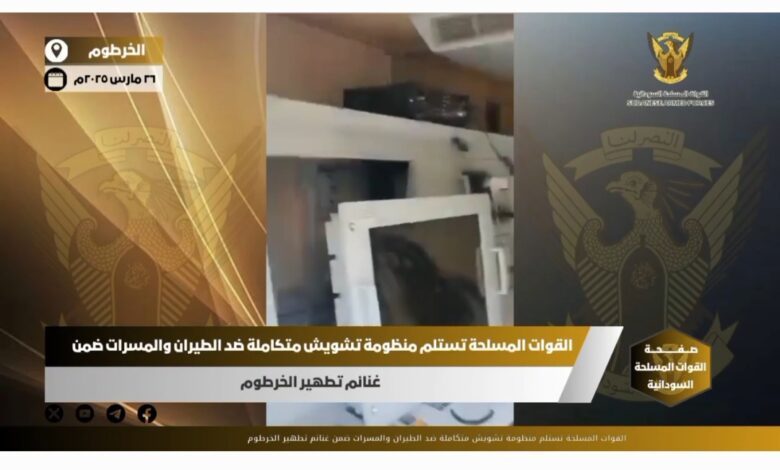 استلمت القوات المسلحة منظومة تشويش متكاملة ضد المسيرات والطيران كانت المليشيا نصبتها بضاحية الرياض شارع المشتل وذلك بعد ان تمكنت من دحرها