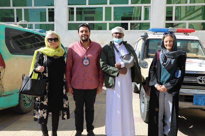 ونشر المرتضى صورة وثقت لحظة تسليم الأسير السوداني للجنة الدولية للصليب الأحمر في اليمن