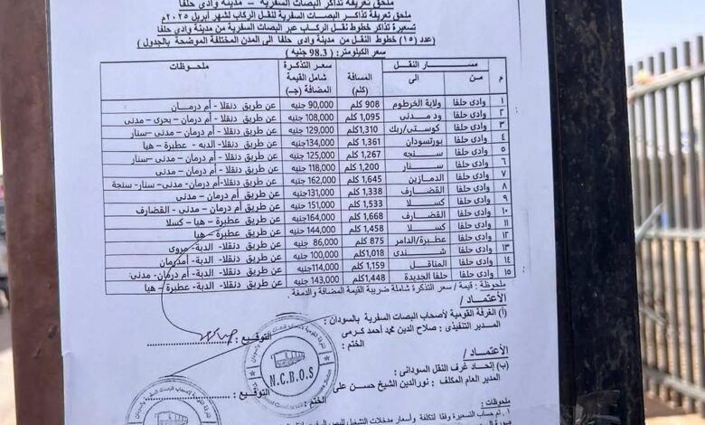 زيادة كبيرة في أسعار تعرفة الباصات السفرية من معبر أرقين لولايات السودان.