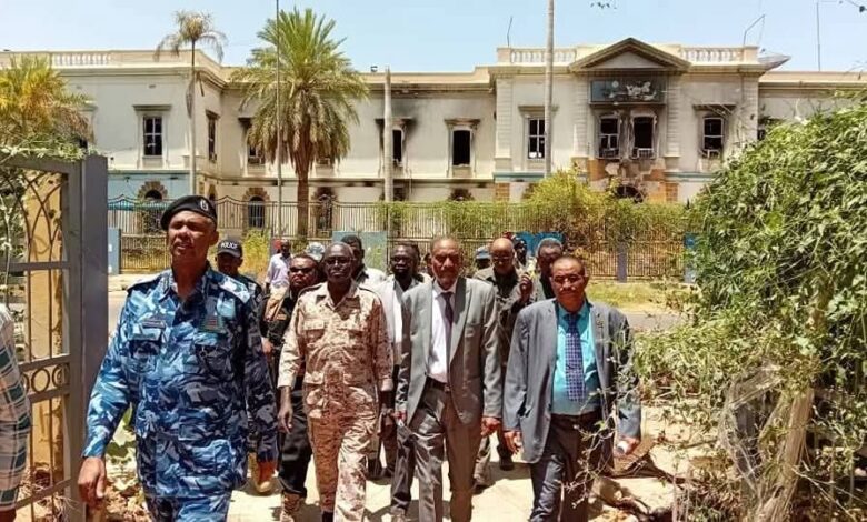 ووقف الوفد على حجم الدمار الذى لحق بمؤسسات القضاء على يد المليشيا المتمرد من حرق المستندات القضائية والسجلات وسرقة الاثاثات وكوابل الكهرباء.