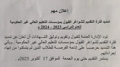 تمديد فترة التقديم لشواغر القبول بمؤسسات التعليم العالي غير الحكومية