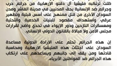 حكومة السودان تستنكر الصمت الدولي تجاه جرائم مليـ.ـشيا آل دقلو في الفاشر