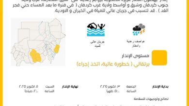 الأرصاد تصدر إنذار برتقالي بخطورة عالية