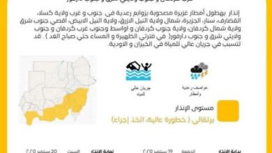 تحذير من أمطار غزيرة وزوابع رعدية بمعظم ولايات السودان