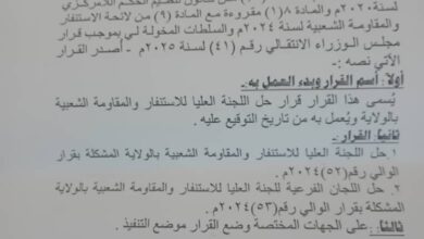 والي الشمالية يحل اللجنة العليا للاستنفار والمقاومة الشعبية
