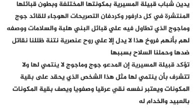 شباب المسيرية يصدرون بيان بشأن “جوج وماجوج”