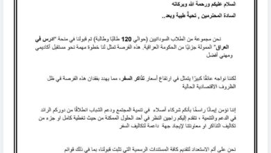. مناشدة لقطاع الطيران: طلاب سودانيون مقبولون في الجامعات العراقية يواجهون صعوبات السفر