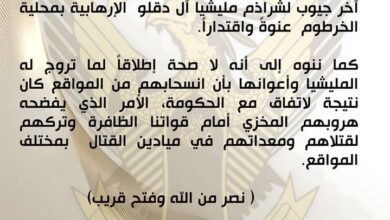 الجيش: “المليشيا” هُزمت ولم تنسحب.. رصدنا عناصر في هذه المنطقة