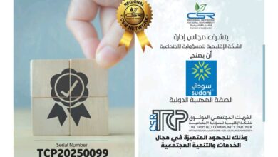 الشبكة الاقليمية للمسؤولية المجتمعية تمنح شركة (سوداني) “صفة الشريك المجتمعى الموثوق