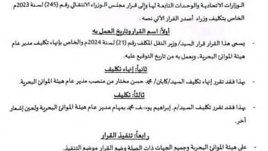 إعفاء مدير هيئة الموانئ البحرية من منصبه وتكليف نائبه
